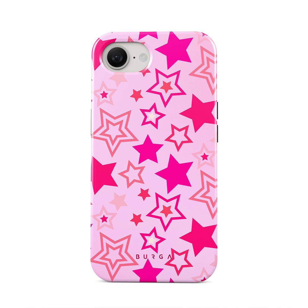 Buckle up for a starry ride, and let's twirl under the Plastic Sky. Neon stars shimmering across a cheeky rose-tinted galaxy create a playful space-disco atmosphere. Be the center of the universe with our Plastic Sky iPhone 16e phone case!