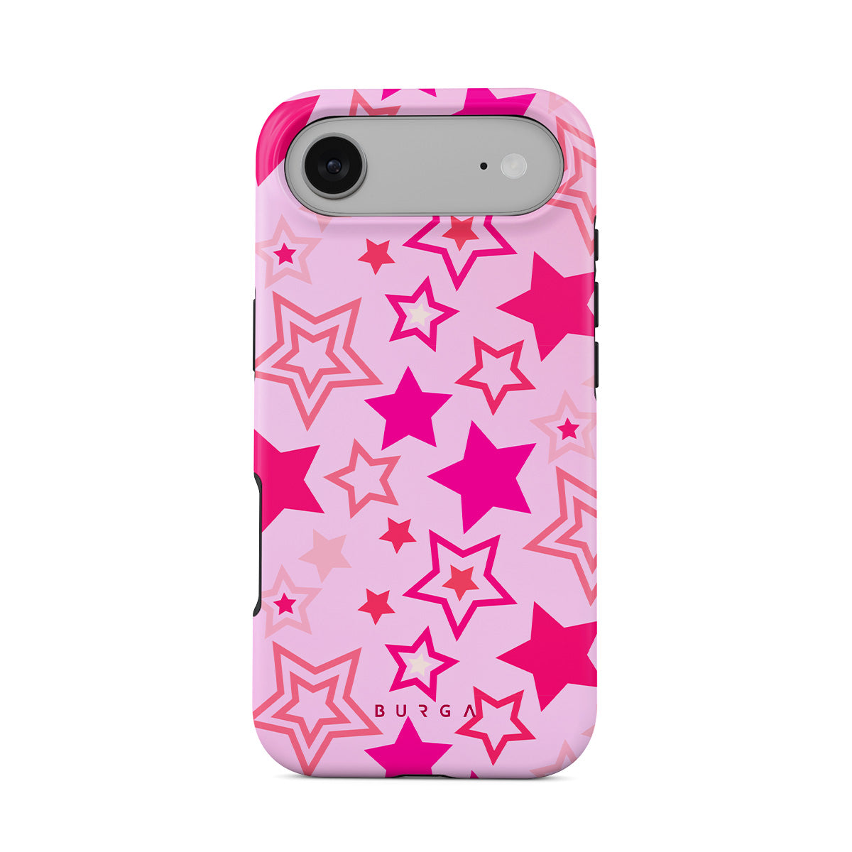 Buckle up for a starry ride, and let's twirl under the Plastic Sky. Neon stars shimmering across a cheeky rose-tinted galaxy create a playful space-disco atmosphere. Be the center of the universe with our Plastic Sky iPhone Air phone case!