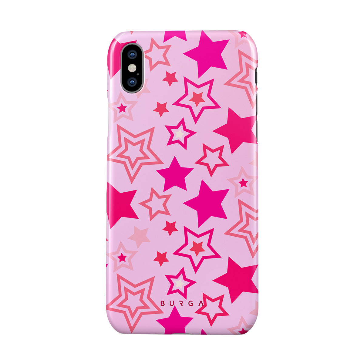 Buckle up for a starry ride, and let's twirl under the Plastic Sky. Neon stars shimmering across a cheeky rose-tinted galaxy create a playful space-disco atmosphere. Be the center of the universe with our Plastic Sky iPhone X / XS phone case!