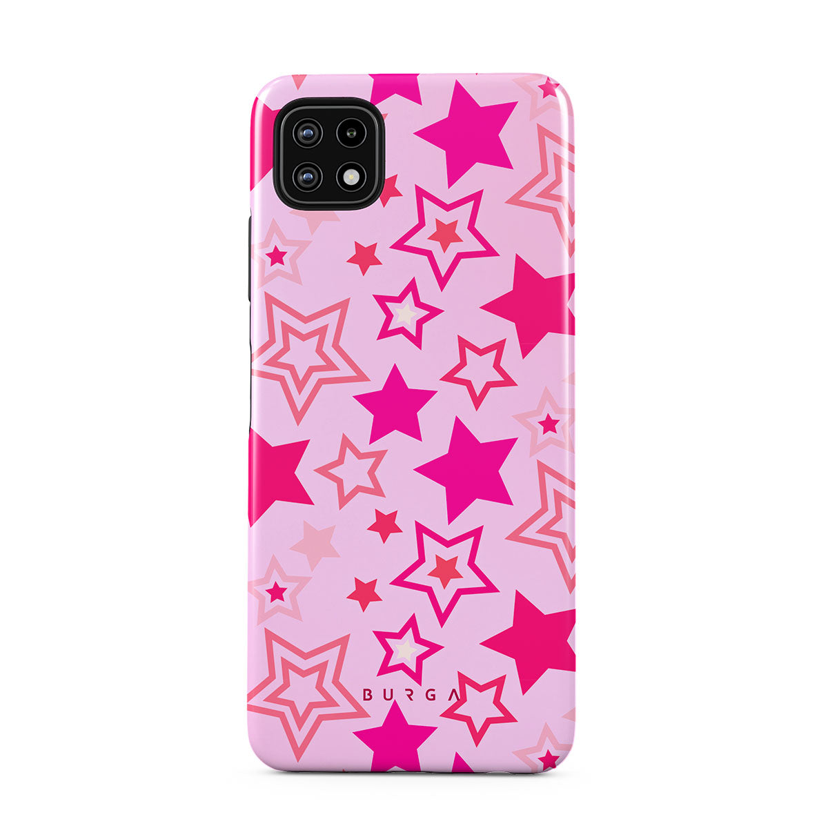 Buckle up for a starry ride, and let's twirl under the Plastic Sky. Neon stars shimmering across a cheeky rose-tinted galaxy create a playful space-disco atmosphere. Be the center of the universe with our Plastic Sky Samsung Galaxy A22 5G phone case!