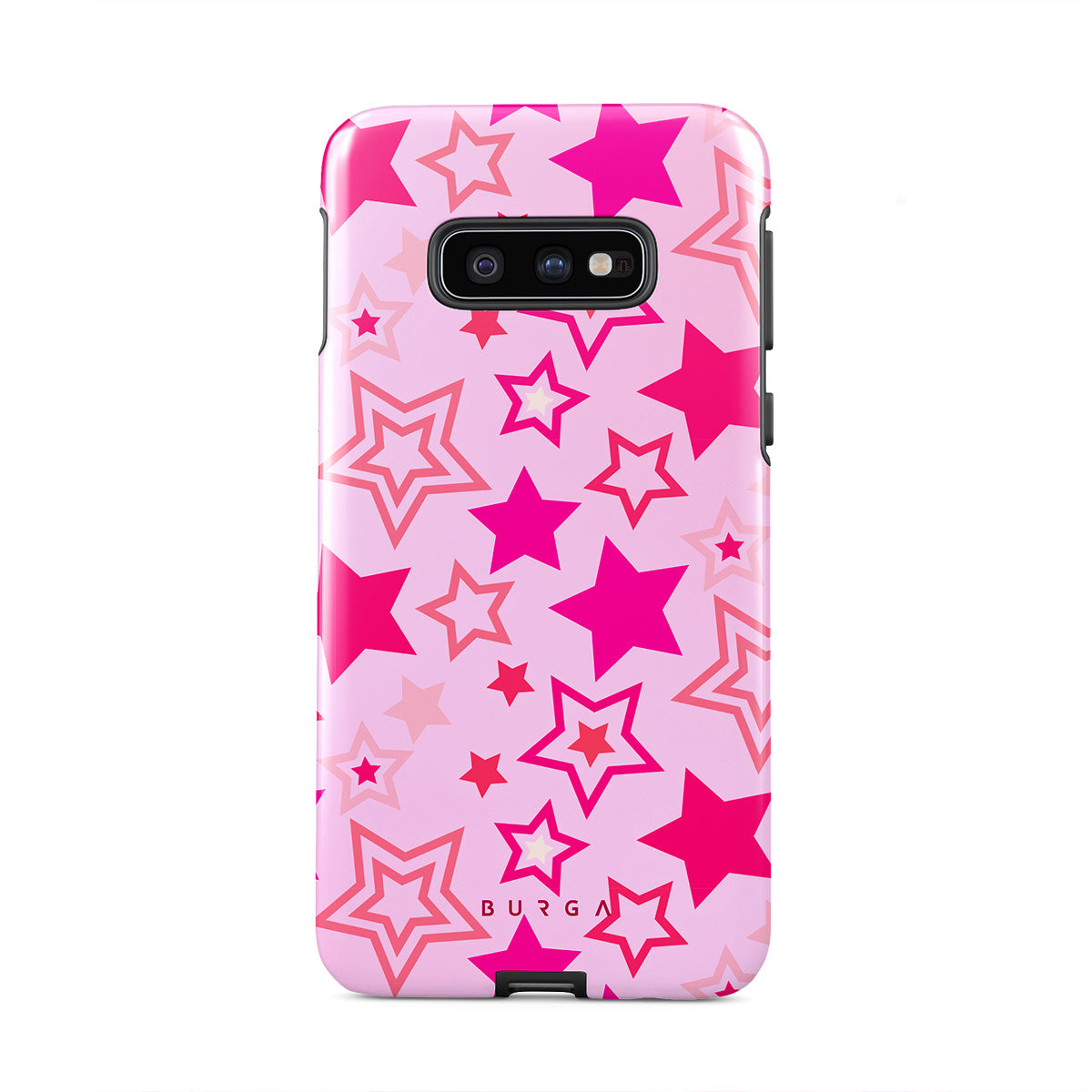 Buckle up for a starry ride, and let's twirl under the Plastic Sky. Neon stars shimmering across a cheeky rose-tinted galaxy create a playful space-disco atmosphere. Be the center of the universe with our Plastic Sky Samsung Galaxy S10E phone case!
