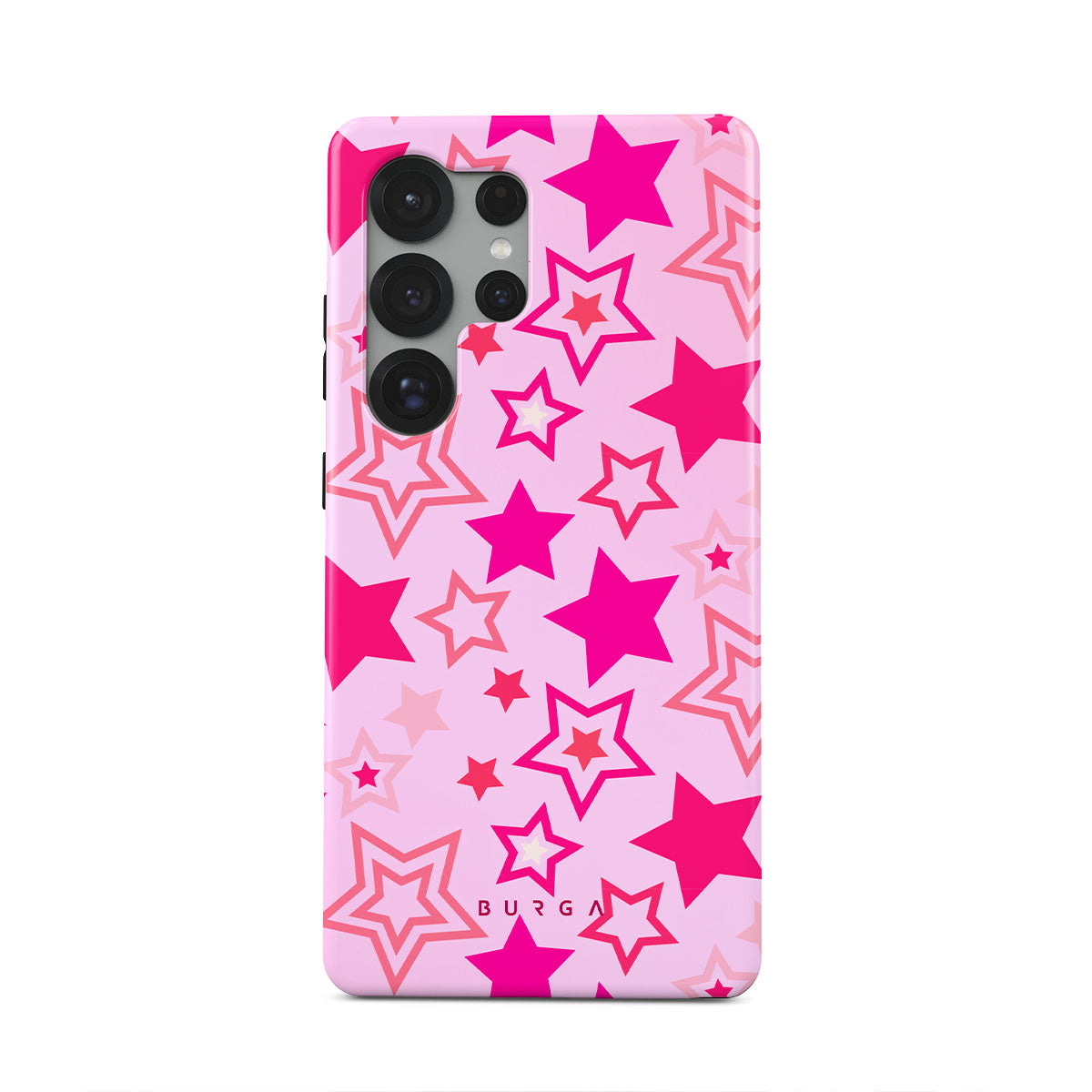 Buckle up for a starry ride, and let's twirl under the Plastic Sky. Neon stars shimmering across a cheeky rose-tinted galaxy create a playful space-disco atmosphere. Be the center of the universe with our Plastic Sky Samsung Galaxy S25 Ultra phone case!