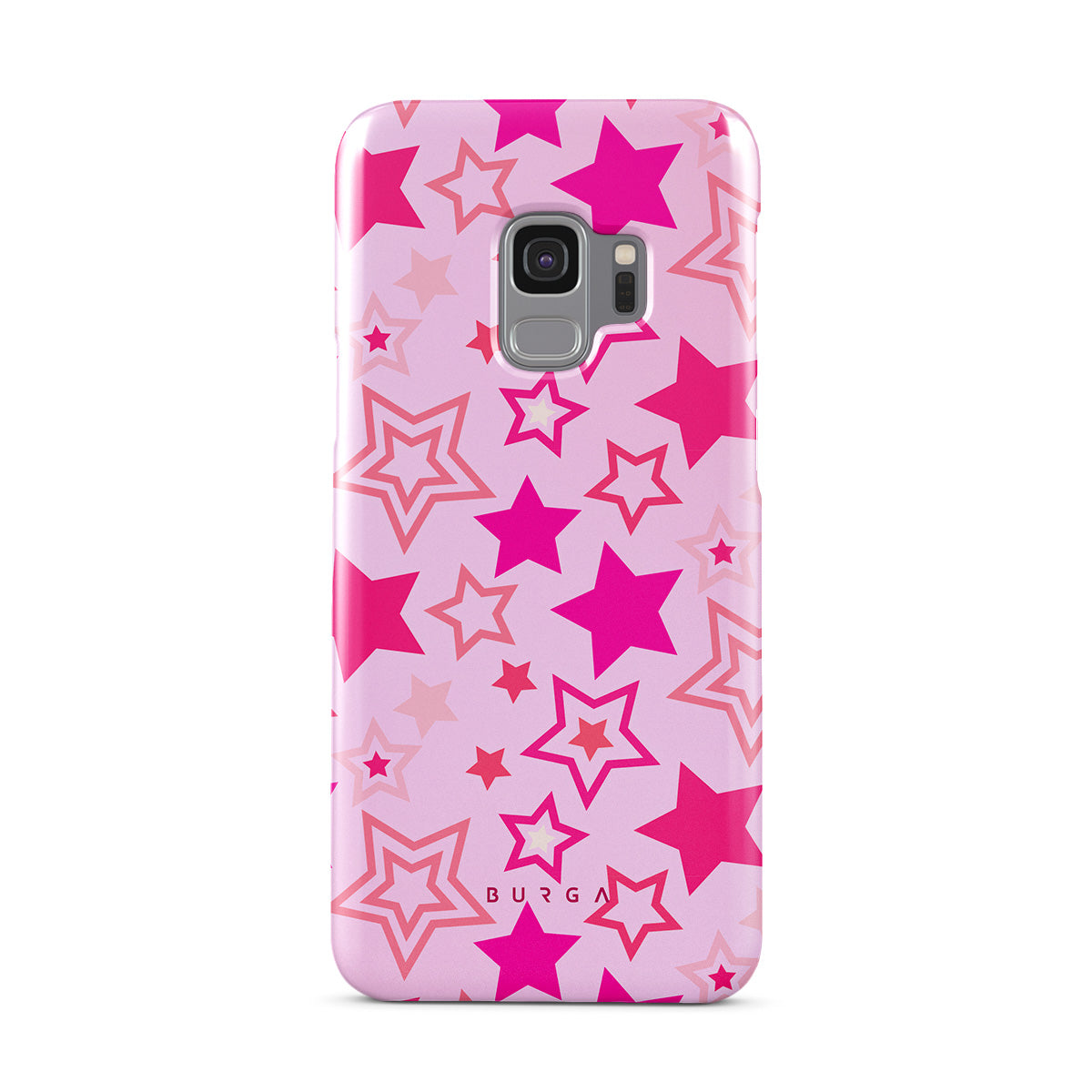 Buckle up for a starry ride, and let's twirl under the Plastic Sky. Neon stars shimmering across a cheeky rose-tinted galaxy create a playful space-disco atmosphere. Be the center of the universe with our Plastic Sky Samsung Galaxy S9 phone case!