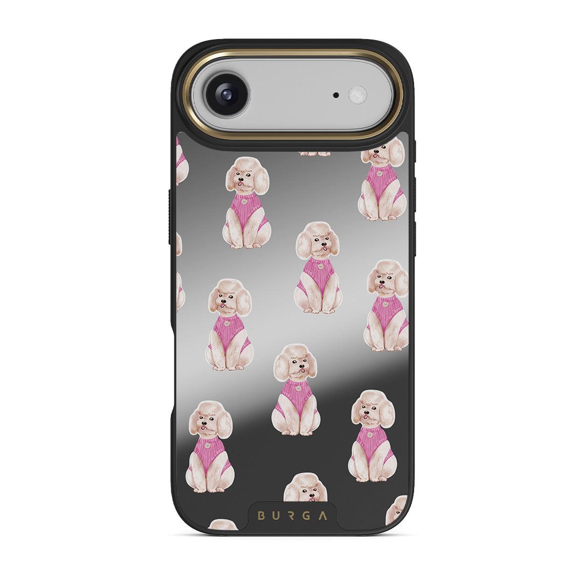 This design features: poodles, dogs, pets, pink details, mirror