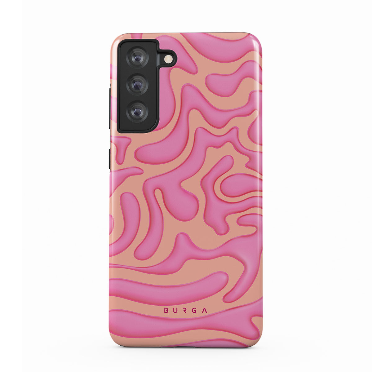Indulge in the sweet 2000s nostalgia with our Popsicle case—a deliciously retro accessory that's both playful and chic. This Samsung Galaxy S21 FE phone case is a stunning fusion of Y2K-inspired swirls in shades of bubblegum pink, laced with shimmering metallic accents. Bring a touch of summer fun and vintage flair to your device with the Popsicle design.