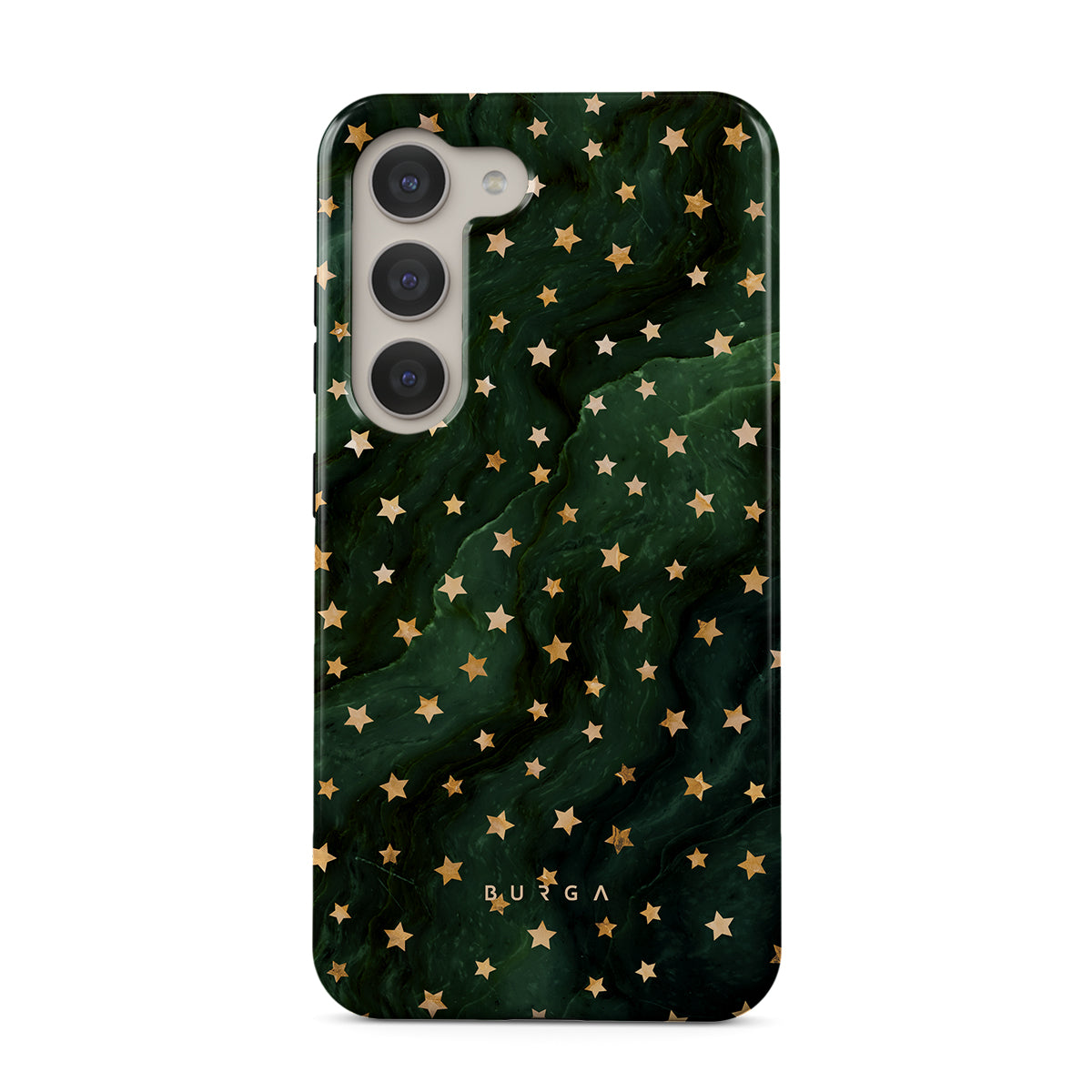 Our Prince Charming Samsung Galaxy S23 phone case is the only prince your device will ever need. Deep green marble with some magical stars will indeed look extraordinary in your accessories collection. We can also promise that this prince, although green, will not turn into a frog, and he will always be there for your phone!