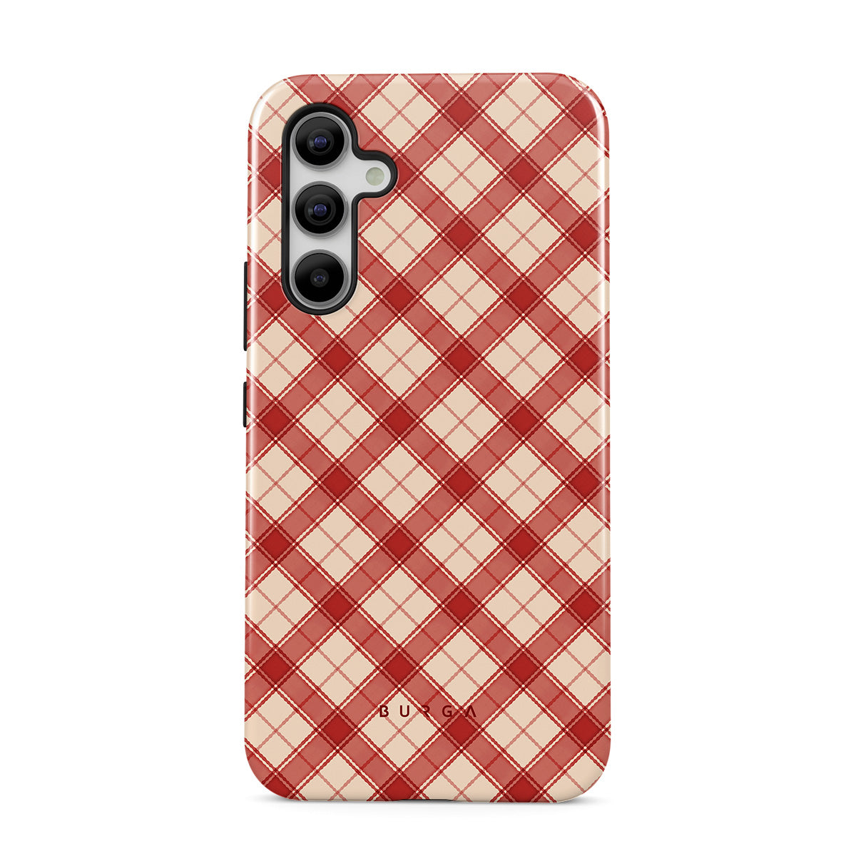 This design features: red and tan plaid, diagonal plaid pattern, classic tartan, buffalo check style, traditional Christmas plaid