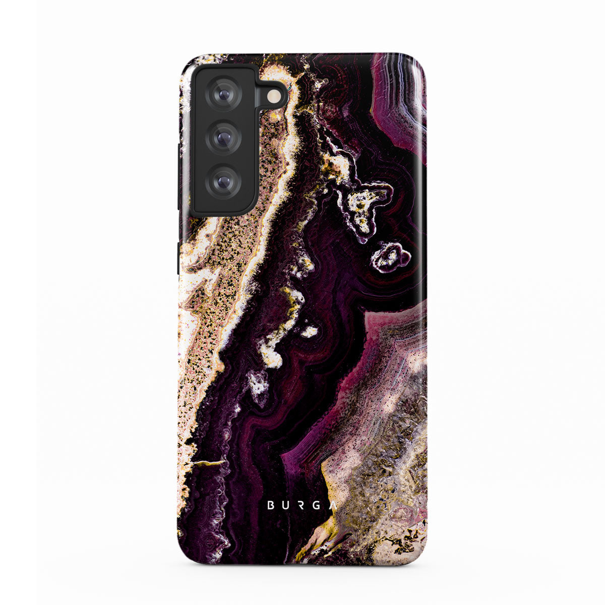 Marble meets geode look in our durable Purple Skies Samsung Galaxy S21 FE phone case. You can rest sure that our hard-shell purple marble phone case will protect your device from any unexpected falls while adding elegance and luxury to your style.