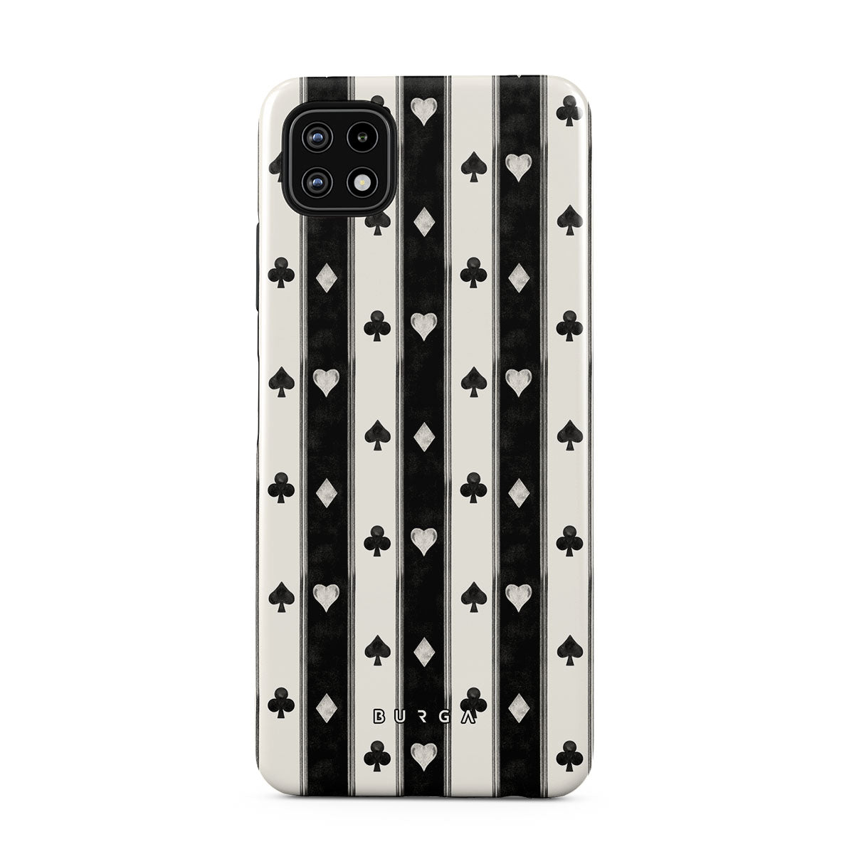 Black and white, power and play. The Queen’s Court Samsung Galaxy A22 5G phone case design doesn’t ask for permission—it takes what it wants. If you’re not moving pieces, you’re one of them.