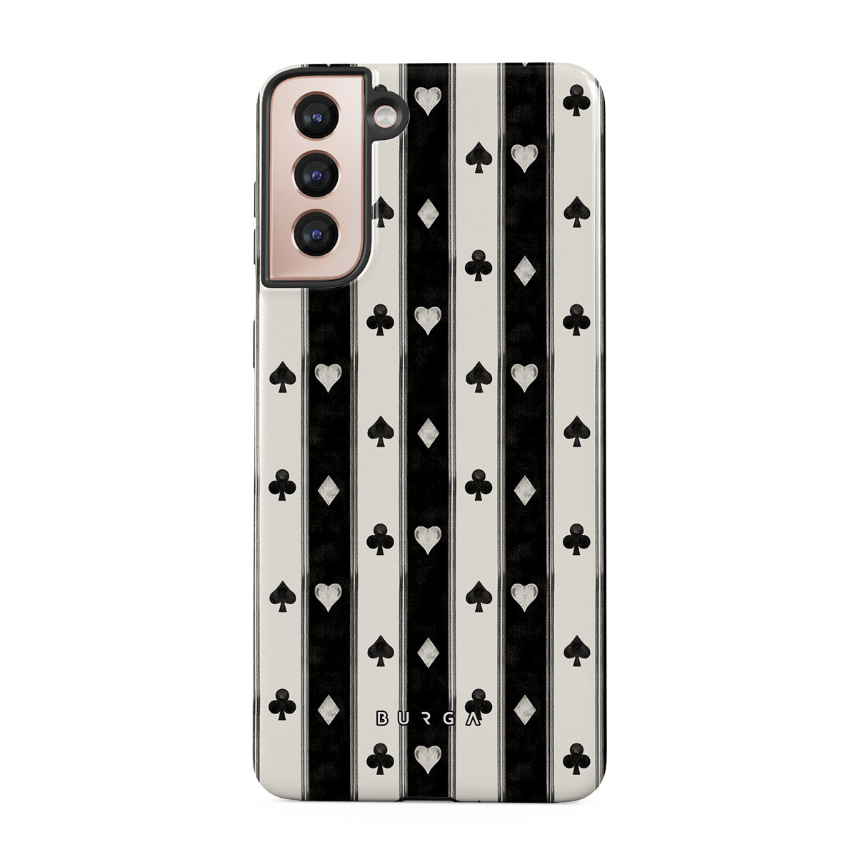 Black and white, power and play. The Queen’s Court Samsung Galaxy S21 Plus phone case design doesn’t ask for permission—it takes what it wants. If you’re not moving pieces, you’re one of them.