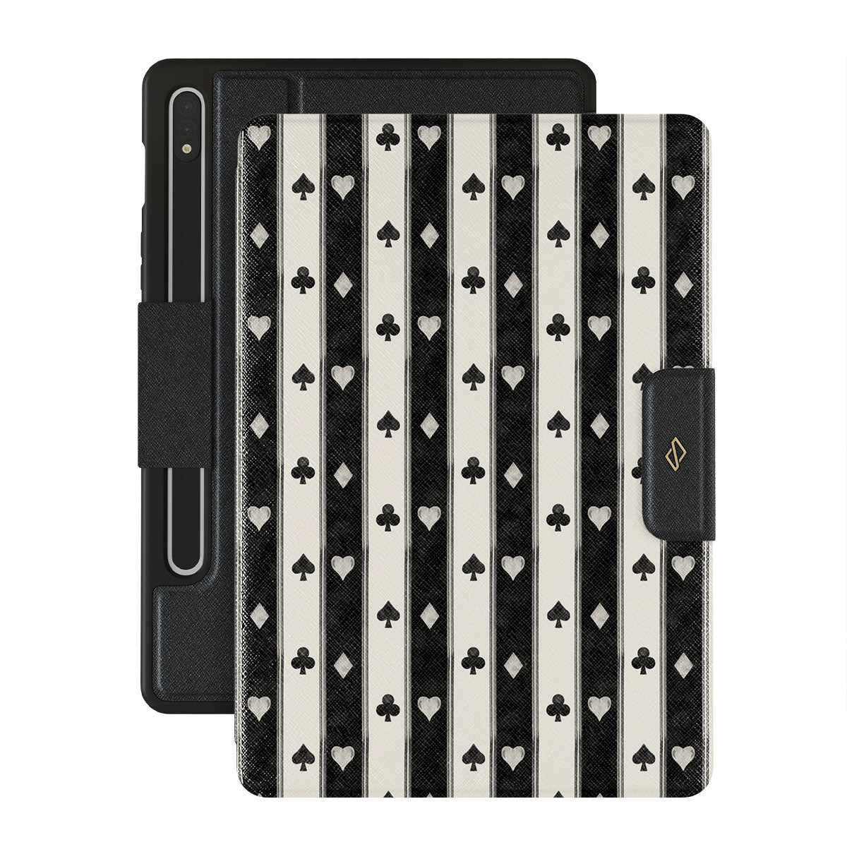 Black and white, power and play. The Queen’s Court Samsung Galaxy Tab S9 FE folio case design doesn’t ask for permission—it takes what it wants. If you’re not moving pieces, you’re one of them.