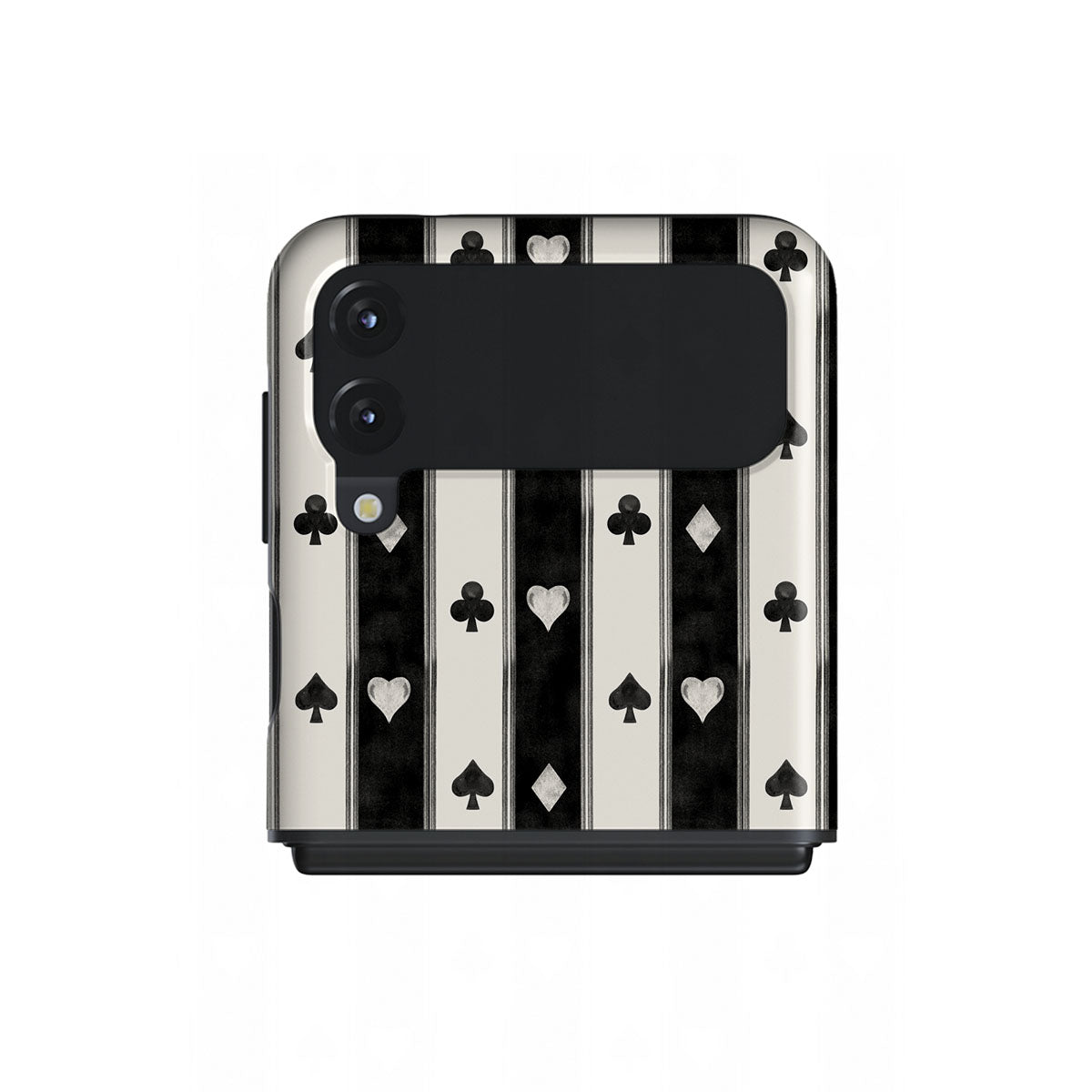 Black and white, power and play. The Queen’s Court Samsung Galaxy Z Flip 3 phone case design doesn’t ask for permission—it takes what it wants. If you’re not moving pieces, you’re one of them.