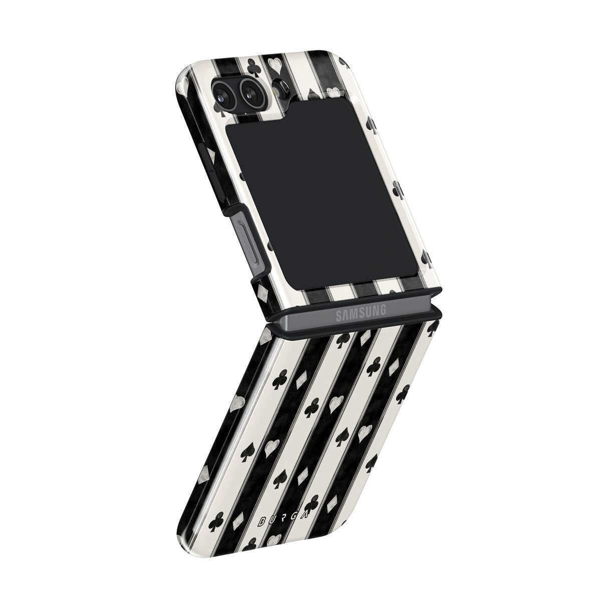 Black and white, power and play. The Queen’s Court Samsung Galaxy Z Flip 5 phone case design doesn’t ask for permission—it takes what it wants. If you’re not moving pieces, you’re one of them.