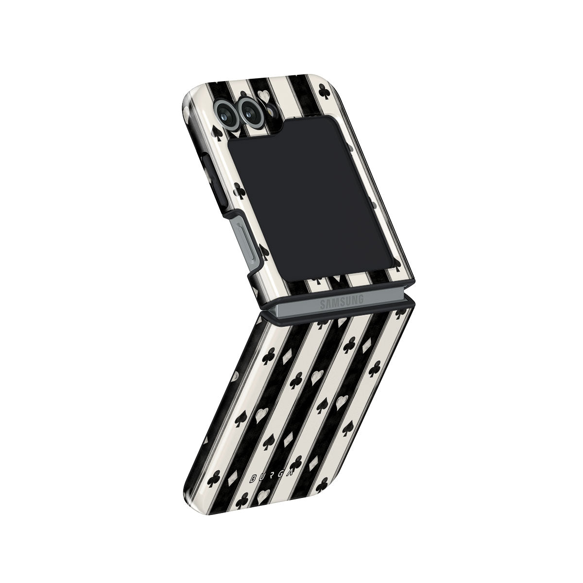 Black and white, power and play. The Queen’s Court Samsung Galaxy Z Flip 6 phone case design doesn’t ask for permission—it takes what it wants. If you’re not moving pieces, you’re one of them.