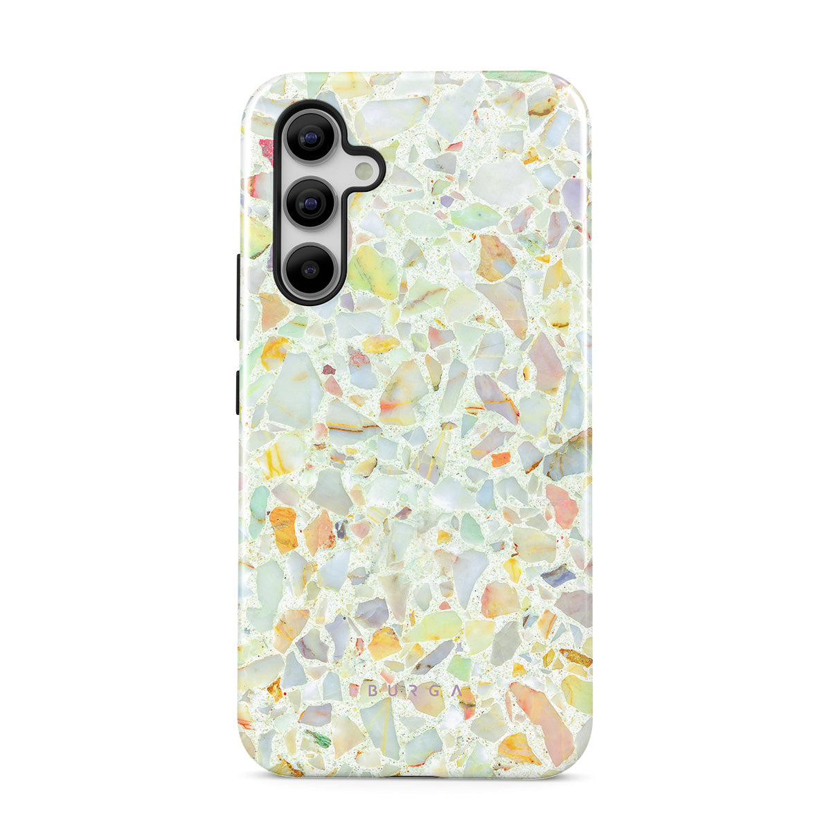 Sun is shining bright, creating rainbows on the path as the light and warm rain just washed the tiles. Walk around barefoot and feel the magic in your steps. Take this summery feeling encased in a cute Samsung Galaxy A51 phone case that is as protective as mesmerizing the rainbow can be.