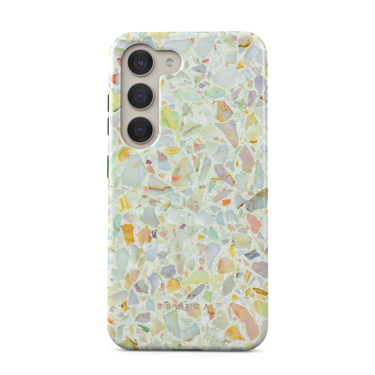 Sun is shining bright, creating rainbows on the path as the light and warm rain just washed the tiles. Walk around barefoot and feel the magic in your steps. Take this summery feeling encased in a cute Samsung Galaxy S23 Plus phone case that is as protective as mesmerizing the rainbow can be.