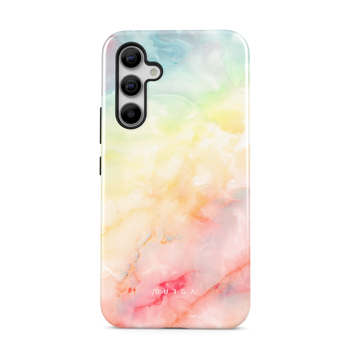Color your world with our New Flame Samsung Galaxy A51 phone case. Inspired by the rainbow, this case is guaranteed to brighten your style. The dreamy pastel rainbow and the shockproof design of our case will keep your phone safe and sound while looking better than ever.