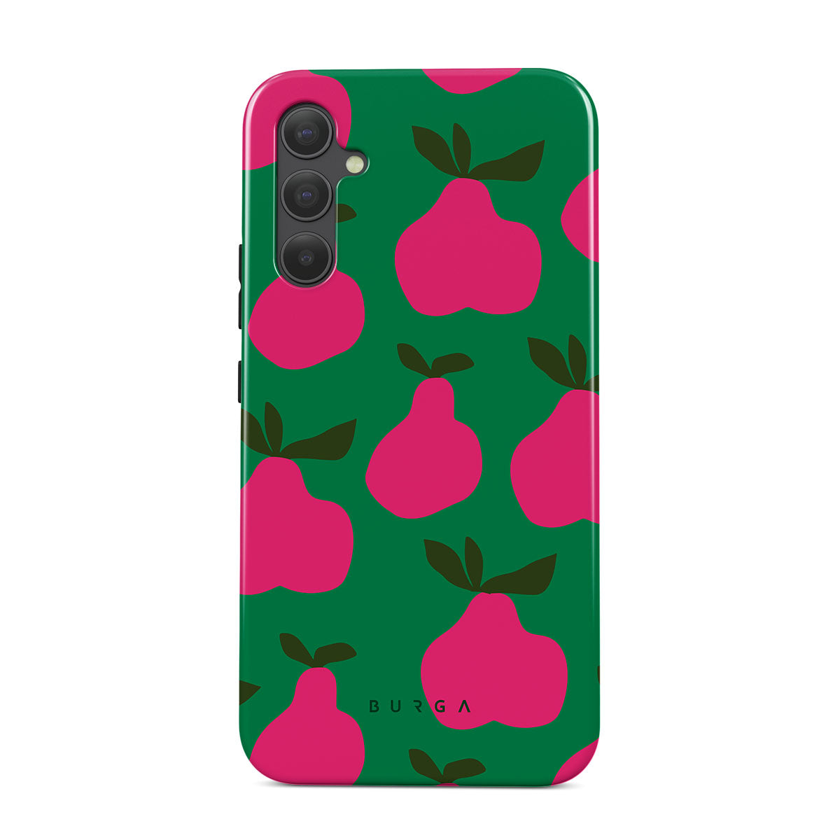 A symphony of refreshing pink pears against a backdrop of lush greeneryRefresco is a sip of summer, a zesty reminder of the sweetness surrounding us. With a lively design, this Samsung Galaxy A34 phone case turns your device into a playful masterpiece, inviting you to embrace the joy and vibrancy of life.
