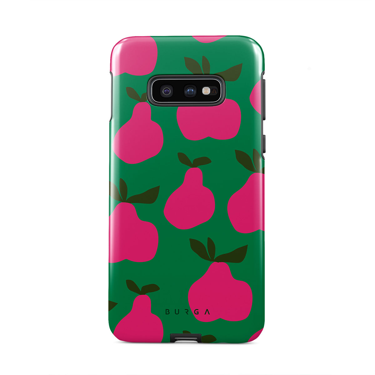 A symphony of refreshing pink pears against a backdrop of lush greeneryRefresco is a sip of summer, a zesty reminder of the sweetness surrounding us. With a lively design, this Samsung Galaxy S10E phone case turns your device into a playful masterpiece, inviting you to embrace the joy and vibrancy of life.