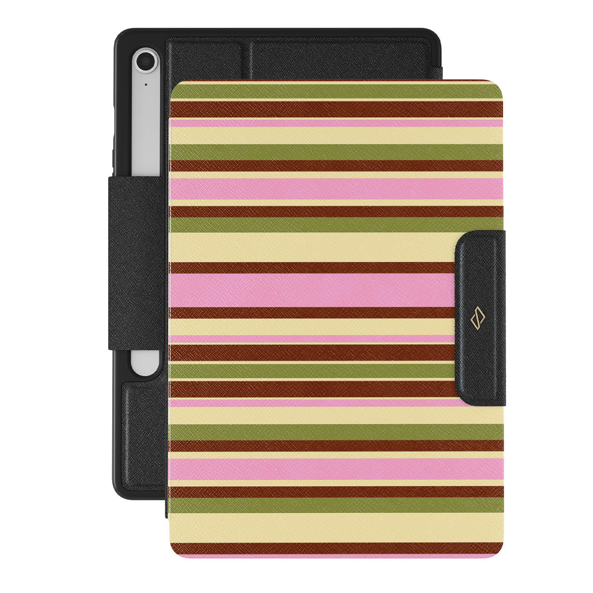 This design features: pastel stripes in pink, yellow, and green, summer pattern