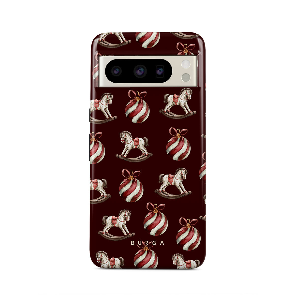 Jingle all the way with this playful Google Pixel 8 Pro phone case design. Featuring rocking horses and candy-striped bells, our Rocking Around design transports you back to childhood moments of decorating the tree and waiting for Santa. It’s the ultimate throwback to vintage Christmas charm.