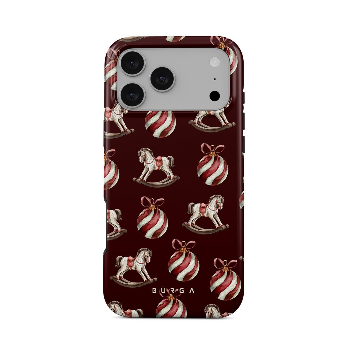Jingle all the way with this playful iPhone 17 Pro Max phone case design. Featuring rocking horses and candy-striped bells, our Rocking Around design transports you back to childhood moments of decorating the tree and waiting for Santa. It’s the ultimate throwback to vintage Christmas charm.