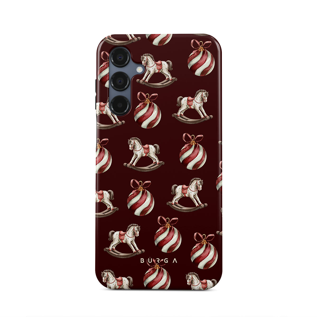 Jingle all the way with this playful Samsung Galaxy A16 phone case design. Featuring rocking horses and candy-striped bells, our Rocking Around design transports you back to childhood moments of decorating the tree and waiting for Santa. It’s the ultimate throwback to vintage Christmas charm.