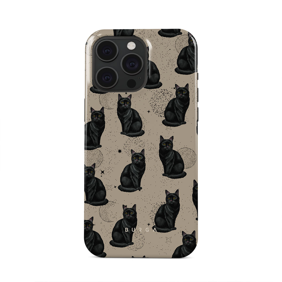 They say black cats are bad luck, but with our Salem iPhone 15 Pro phone case design, fortune follows wherever these little guardians go. These cats aren't just symbols; they’re your protectors in the mysterious world of style. Superstitious or not, this one’s got your back.