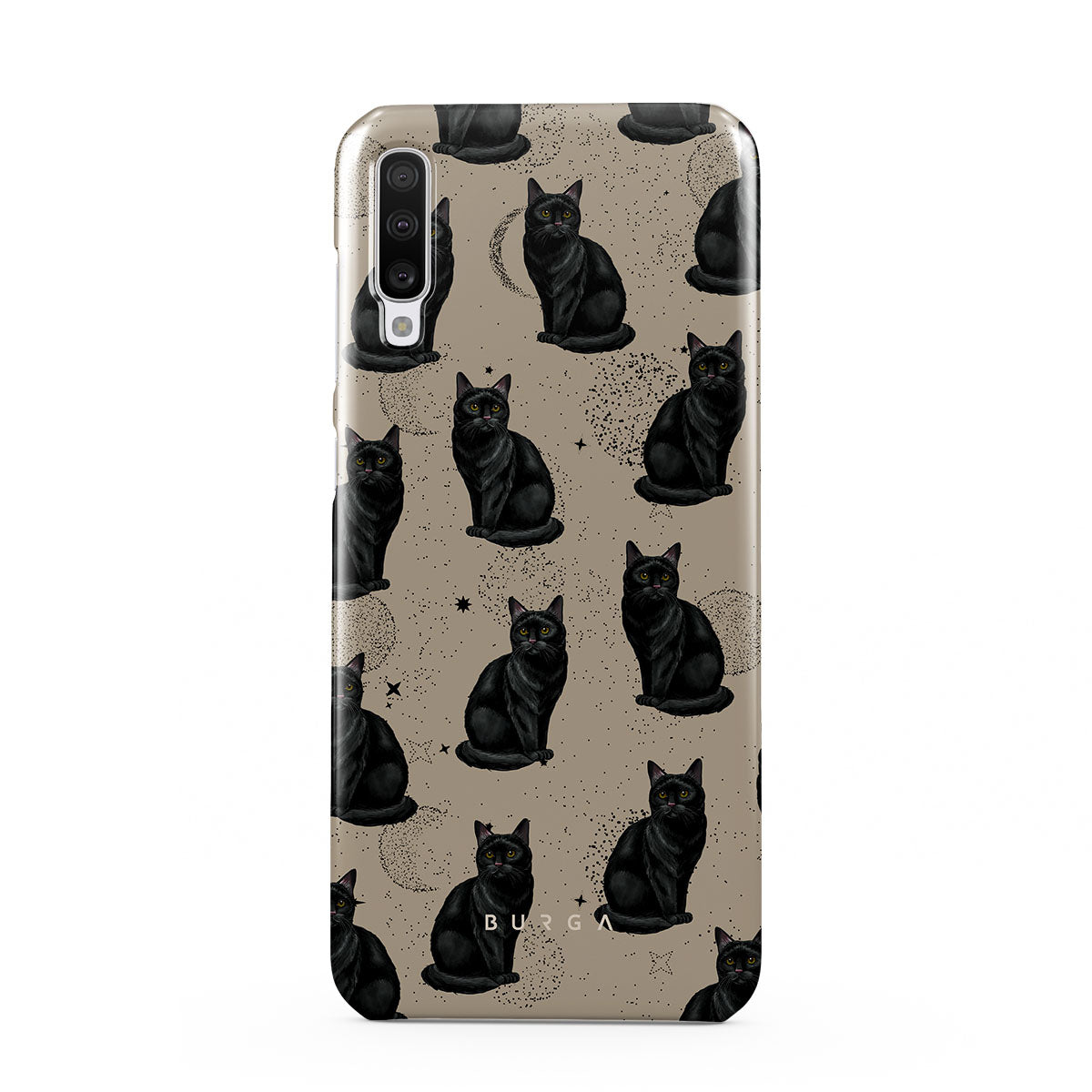 They say black cats are bad luck, but with our Salem Samsung Galaxy A70 phone case design, fortune follows wherever these little guardians go. These cats aren't just symbols; they’re your protectors in the mysterious world of style. Superstitious or not, this one’s got your back.