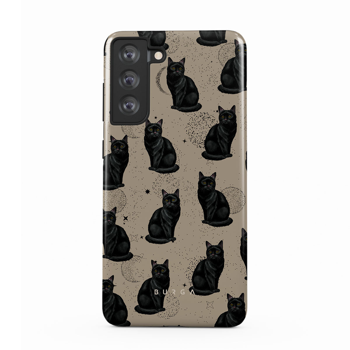 They say black cats are bad luck, but with our Salem Samsung Galaxy S21 FE phone case design, fortune follows wherever these little guardians go. These cats aren't just symbols; they’re your protectors in the mysterious world of style. Superstitious or not, this one’s got your back.