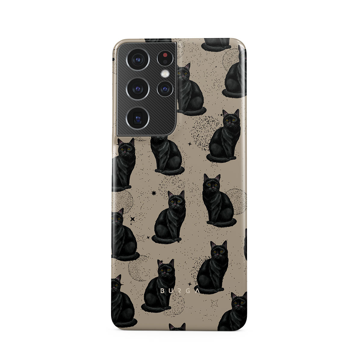They say black cats are bad luck, but with our Salem Samsung Galaxy S21 Ultra phone case design, fortune follows wherever these little guardians go. These cats aren't just symbols; they’re your protectors in the mysterious world of style. Superstitious or not, this one’s got your back.
