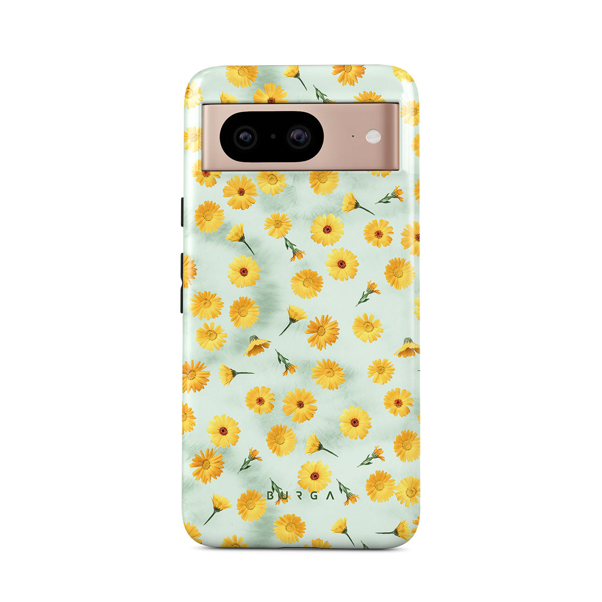 In our Sanctuary of Love Google Pixel 8 phone case, a soft mint marble meets a glowing pattern of yellow flowers that will surely add a splash of energy to your style while protecting your phone from dangerous falls.