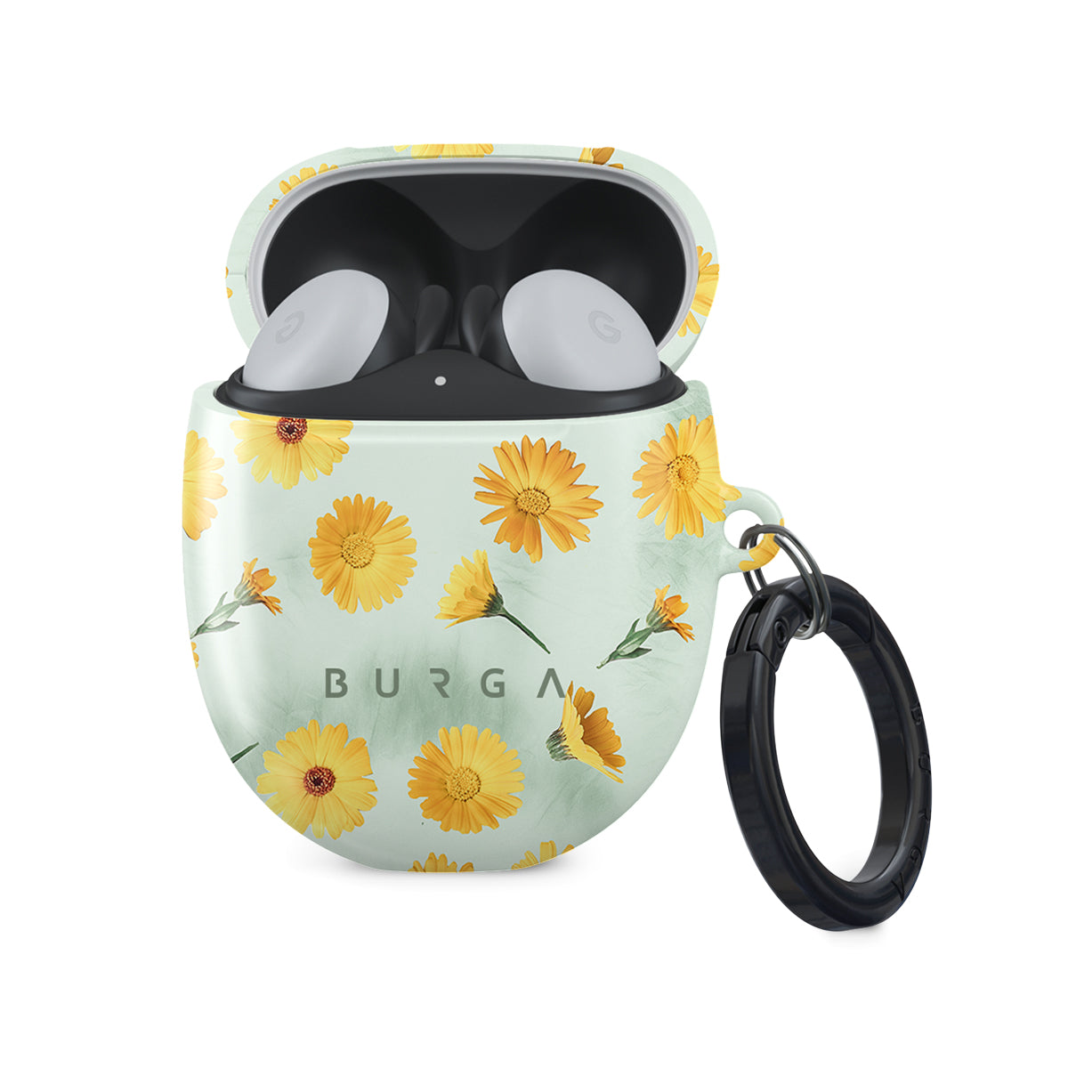 With our Sanctuary of Love Google Pixel Buds 2 case cover, add a touch of brightness to your style, as the bright yellow flower pattern will catch the eye of everyone you meet. Keep your Google Pixel Buds 2 safe and sound, and as a plus, easily findable! Our case fits perfectly snug around Google Pixel Buds 2 . “Like a glove!” one might say. And it won’t disrupt the wireless charging capabilities of the newer model. There’s even an LED light indicator to prove it (don’t worry, wired charging still works, too). When fitted, the BURGA case will protect the delicate Google Pixel Buds 2 case beneath it from scratches, bumps, and drops while remaining scratch-free itself. Our signature design pattern prints are High Quality, and will never peel or fade away- thanks to our unique printing technology. And finally, a handy carabiner is there to make your life easier and more convenient: just snap it around your keys or belt loop and tackle the day head-on. Your music is right there by your side when you need it.