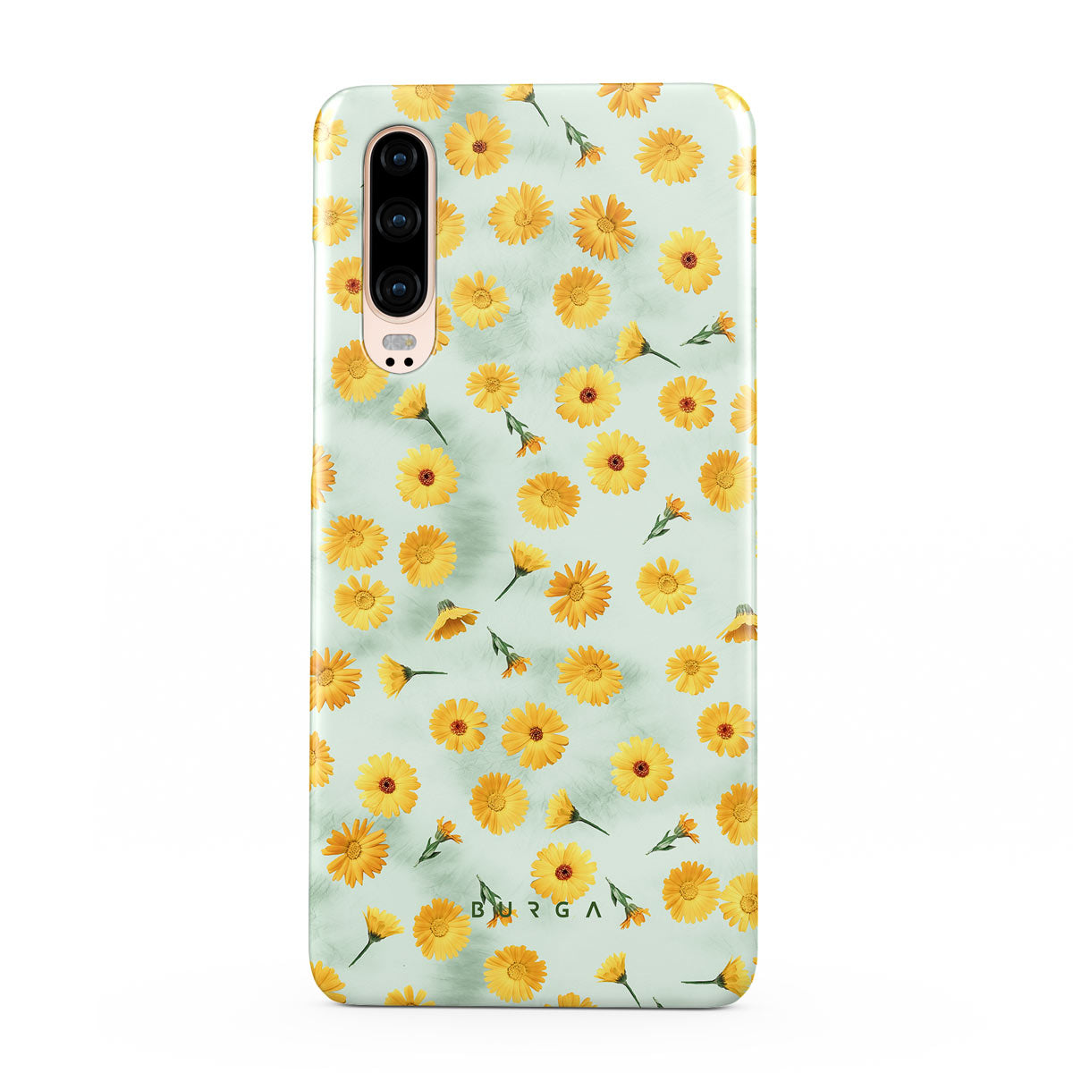 In our Sanctuary of Love Huawei P30 phone case, a soft mint marble meets a glowing pattern of yellow flowers that will surely add a splash of energy to your style while protecting your phone from dangerous falls.
