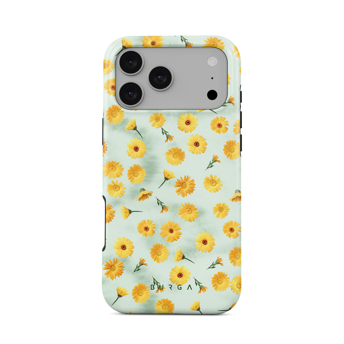 In our Sanctuary of Love iPhone 17 Pro Max phone case, a soft mint marble meets a glowing pattern of yellow flowers that will surely add a splash of energy to your style while protecting your phone from dangerous falls.