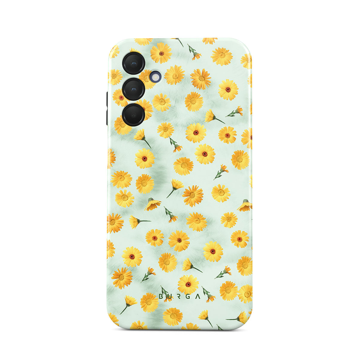 In our Sanctuary of Love Samsung Galaxy A51 phone case, a soft mint marble meets a glowing pattern of yellow flowers that will surely add a splash of energy to your style while protecting your phone from dangerous falls.