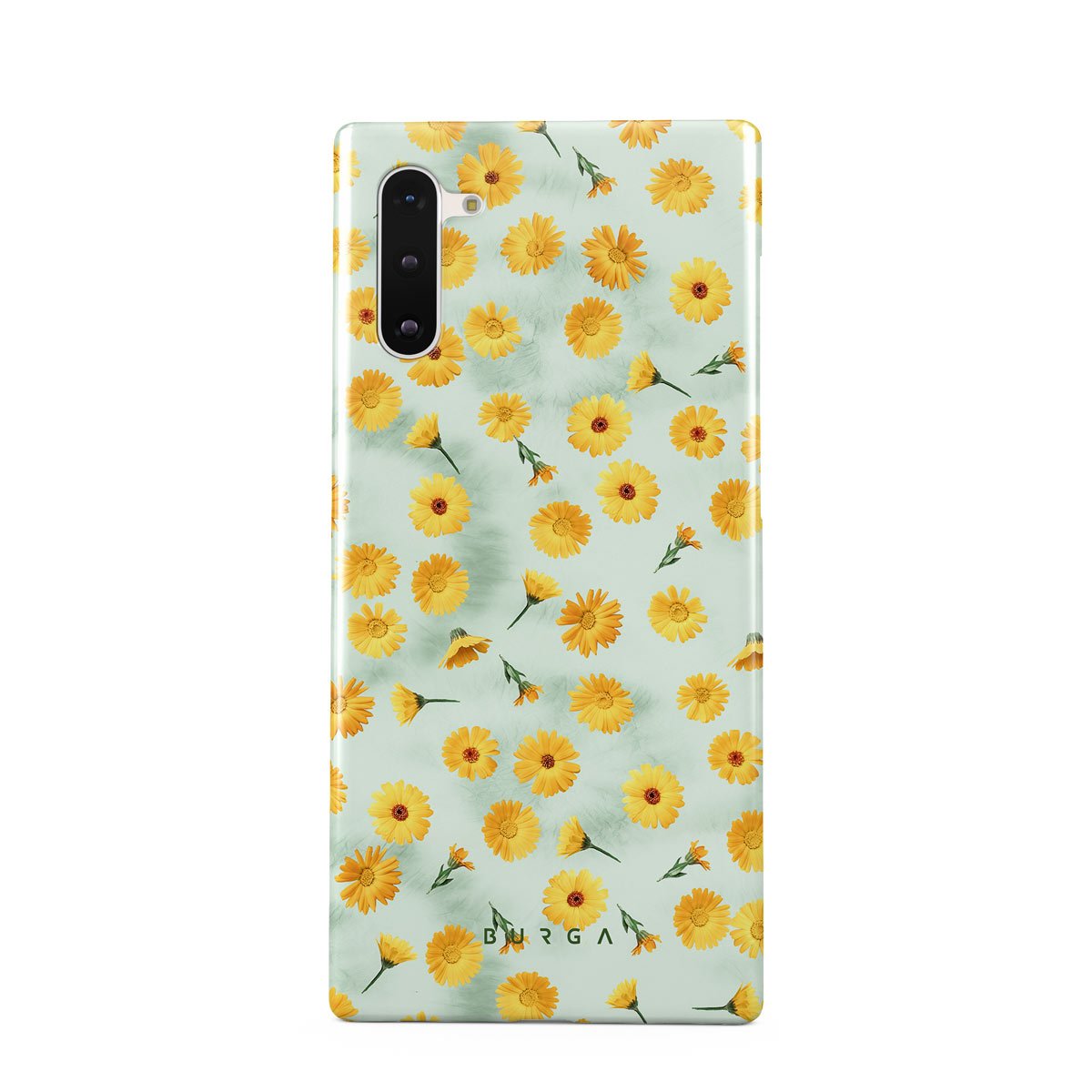 In our Sanctuary of Love Samsung Galaxy Note 10 phone case, a soft mint marble meets a glowing pattern of yellow flowers that will surely add a splash of energy to your style while protecting your phone from dangerous falls.