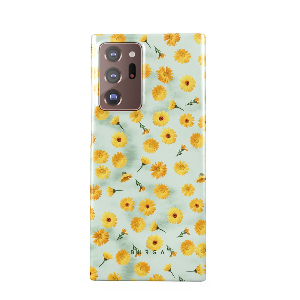 In our Sanctuary of Love Samsung Galaxy Note 20 Ultra 4G / 5G phone case, a soft mint marble meets a glowing pattern of yellow flowers that will surely add a splash of energy to your style while protecting your phone from dangerous falls.