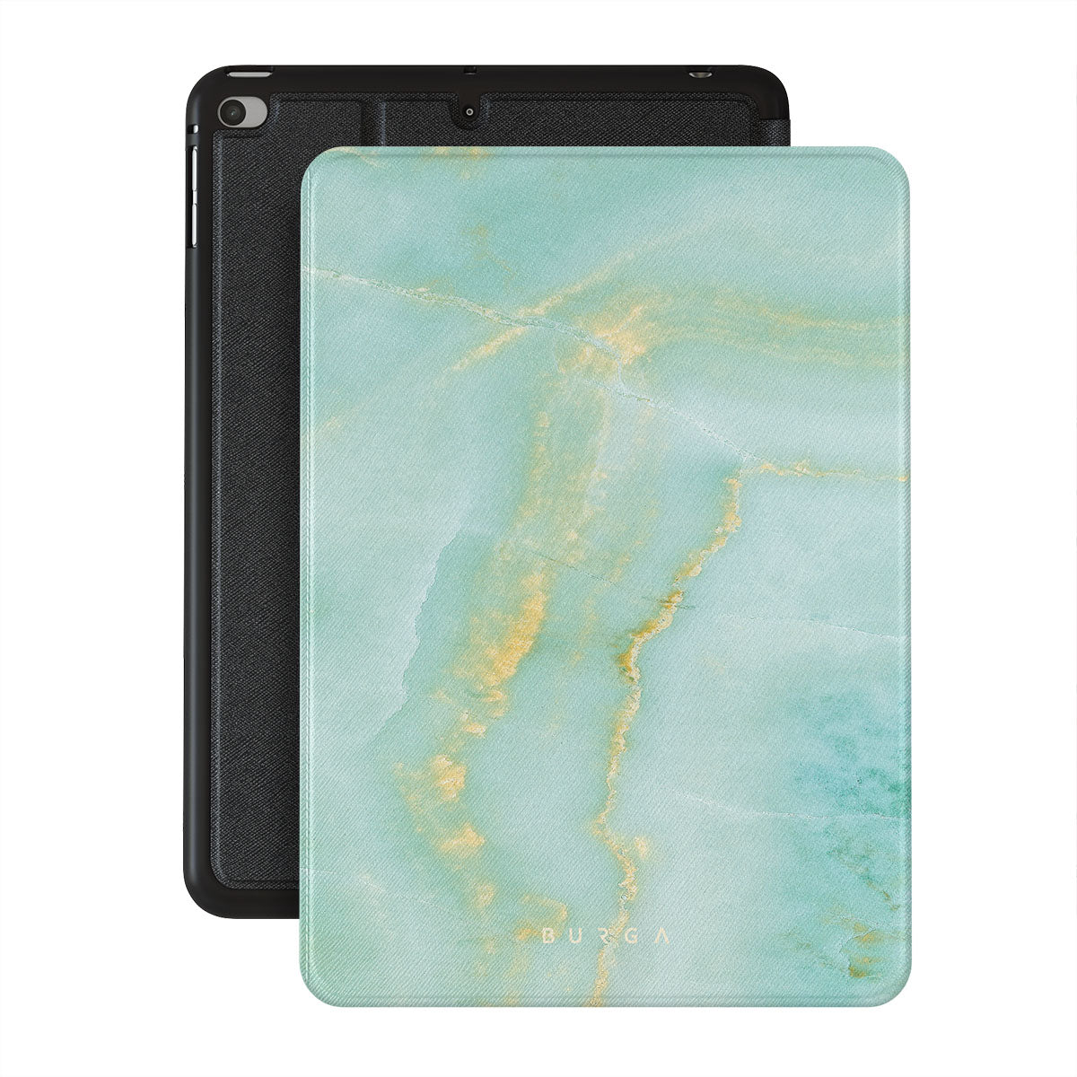 Take the vacation memories with yourself. Now you can find the sandy shore and beautiful water in our pastel Sea Salt iPad Mini 7.9 (5th Gen) folio case design. The delicate marble pattern that combines with pretty pastel colors adds a soft touch to your device while protecting it from falls.