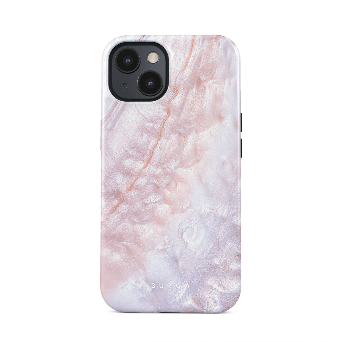 Have you wondered what the crown of a Mermaid would look like? Would it shine through the waters to lure in the sailors, or would it be as subtle as the pretty pattern found on a pastel seashell? Have this subtle sea shell inspired iPhone 13 Mini phone case in your collection and protect your phone in style.