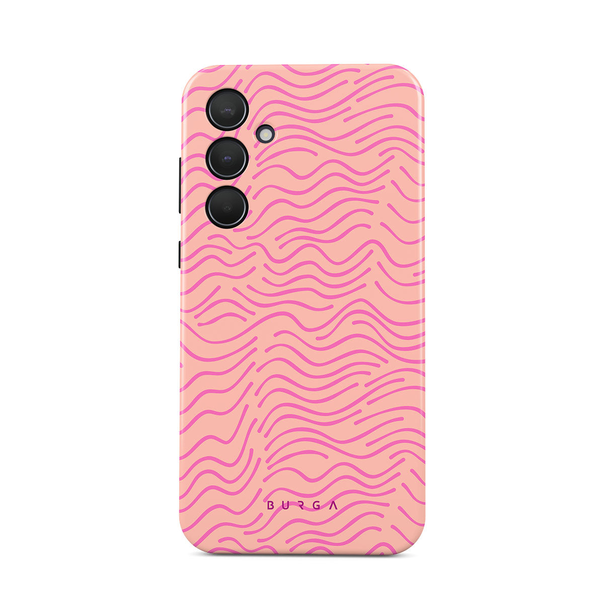 Everyone has their hideaway place for moments of relaxation. We have combined the feel it gives us in our Secret Spot Samsung Galaxy A35 phone case design. The soft pink wavy pattern casually flows through the pastel pink background, creating very well-thought-out chaos. Bring peace of mind with this cute pink case, which will keep your phone safe in its little hideaway!