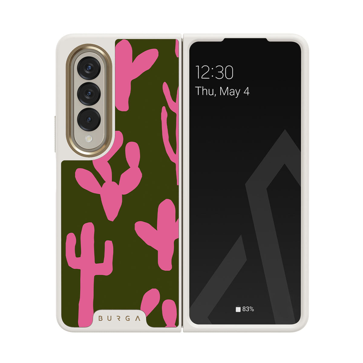 Step into a desert oasis at dusk, where vibrant pink cactuses bloom against a mysterious dark background. Serenade is a poetic fusion of resilience and beauty, turning your Samsung Galaxy Z Fold 4 phone case into a sanctuary of tranquility amidst the chaos of everyday life.