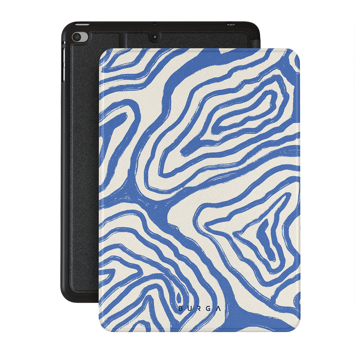 The Seven Seas iPad Mini 7.9 (5th Gen) folio case is a perfect accessory for those who love the ocean and seek to carry a piece of its magic with them. The delicate swirls that dance in shades of oceanic blue inspire a sense of adventure. At the same time, they invite us to pause and appreciate the fluidity and serenity of the sea.