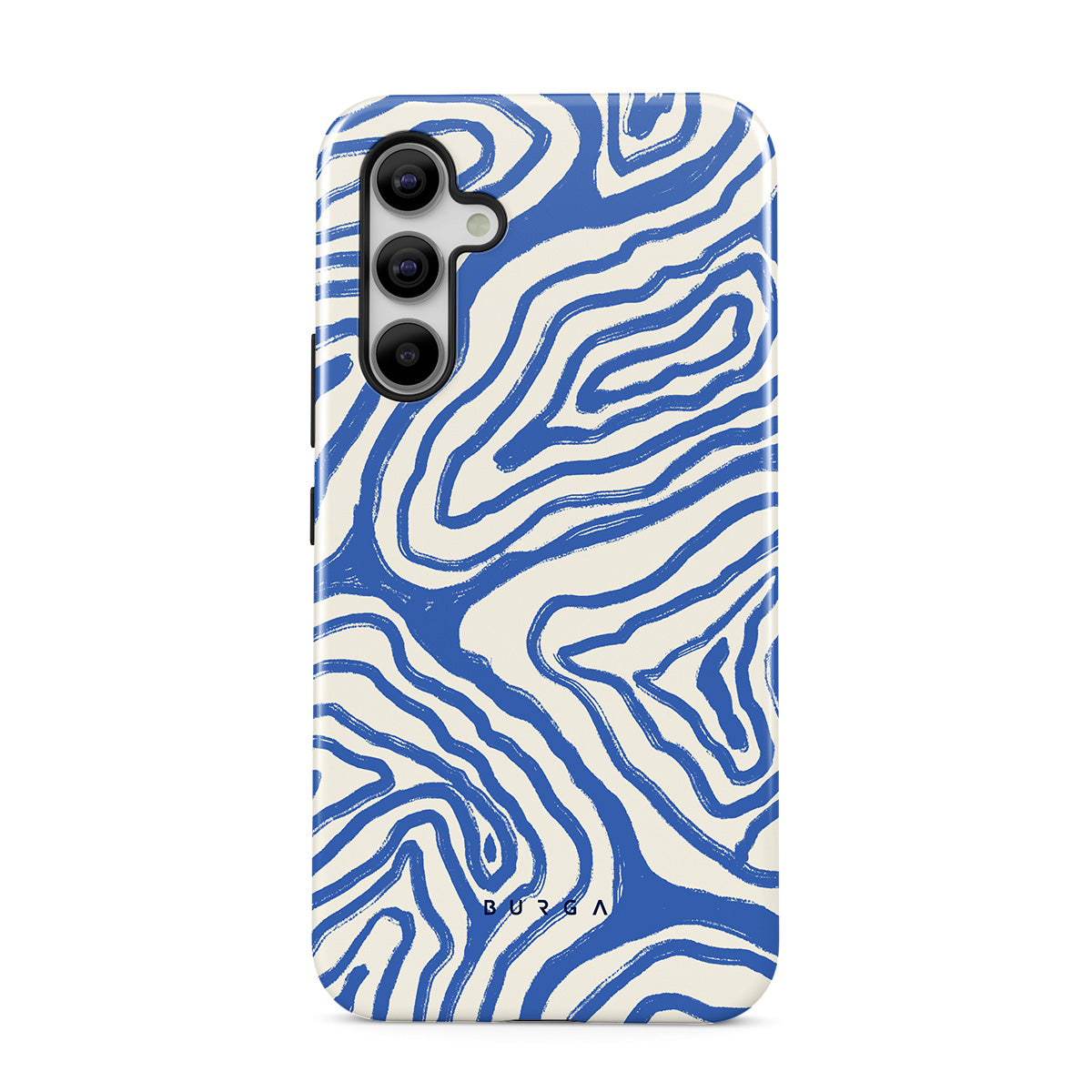 The Seven Seas Samsung Galaxy A54 case is a perfect accessory for those who love the ocean and seek to carry a piece of its magic with them. The delicate swirls that dance in shades of oceanic blue inspire a sense of adventure. At the same time, they invite us to pause and appreciate the fluidity and serenity of the sea.