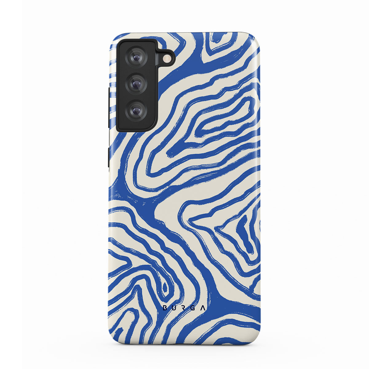 The Seven Seas Samsung Galaxy S21 FE case is a perfect accessory for those who love the ocean and seek to carry a piece of its magic with them. The delicate swirls that dance in shades of oceanic blue inspire a sense of adventure. At the same time, they invite us to pause and appreciate the fluidity and serenity of the sea.