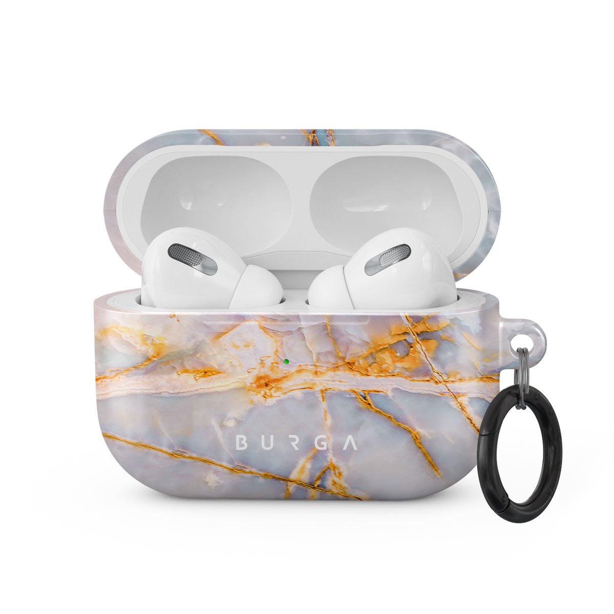 Water marbling effect, pastel colors, and marble trend meet in our Shallow Sea Apple Airpods Pro case cover. Add this unique trifecta to your accessory collection and catch everyone's eye while simply keeping your AirPods safe. Our case fits perfectly snug around Apple Airpods Pro . “Like a glove!” one might say. And it won’t disrupt the wireless charging capabilities of the newer model. There’s even an LED light indicator to prove it (don’t worry, wired charging still works, too). When fitted, the BURGA case will protect the delicate Apple Airpods Pro case beneath it from scratches, bumps, and drops while remaining scratch-free itself. Our signature design pattern prints are High Quality, and will never peel or fade away- thanks to our unique printing technology. And finally, a handy carabiner is there to make your life easier and more convenient: just snap it around your keys or belt loop and tackle the day head-on. Your music is right there by your side when you need it.