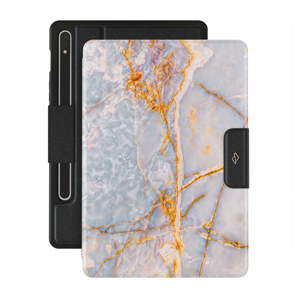 Shells, little fishes, pebbles, and how the water marbles when the sun shines through it inspired our Shallow Sea Samsung Galaxy Tab S9+ folio case. Marble meets geode look in our durable case that will protect your device from any unexpected falls.
