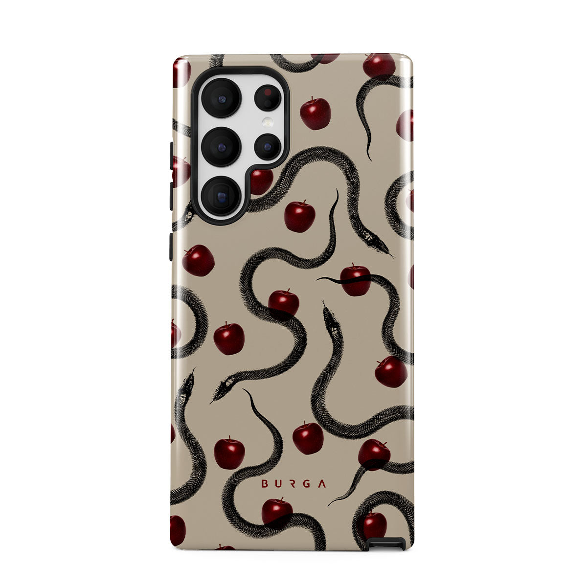 Lush and provocative, this Samsung Galaxy S22 Ultra phone case design pulls you into a story as old as time. The apples glow with promise, the serpents coil with strength. Sinful is a reminder that the sweetest temptations often hide the sharpest edges.
