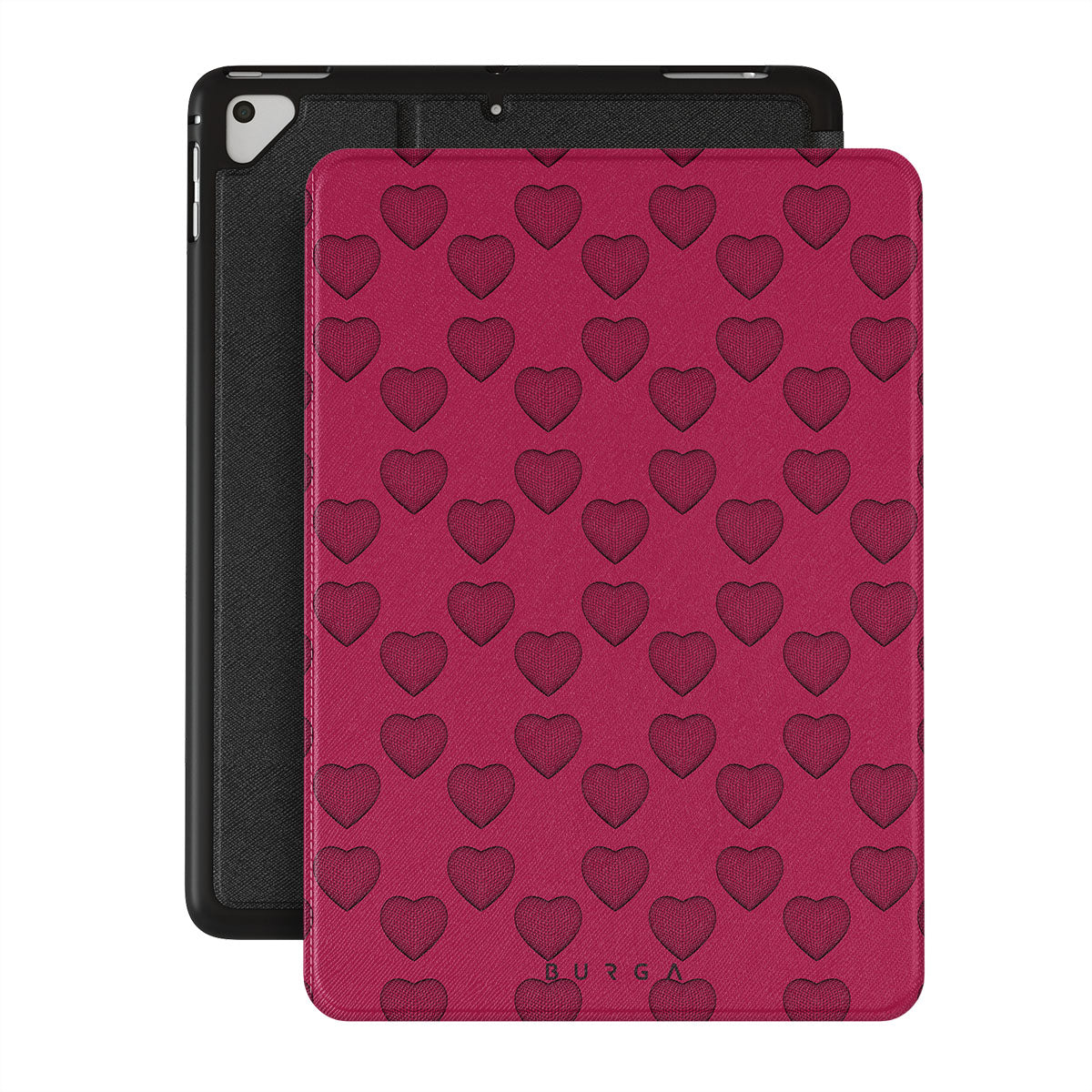 Forget roses. Show the world that you're confident, unapologetically yourself, and ready to take on the day. The vivid pink background is eye-catching and fun. The floating darker hearts add depth and sophistication. While serving as a gentle reminder to prioritize your own happiness, our Single Not Sorry iPad 9.7 (6th/5th Gen) folio case will brighten up any outfit.