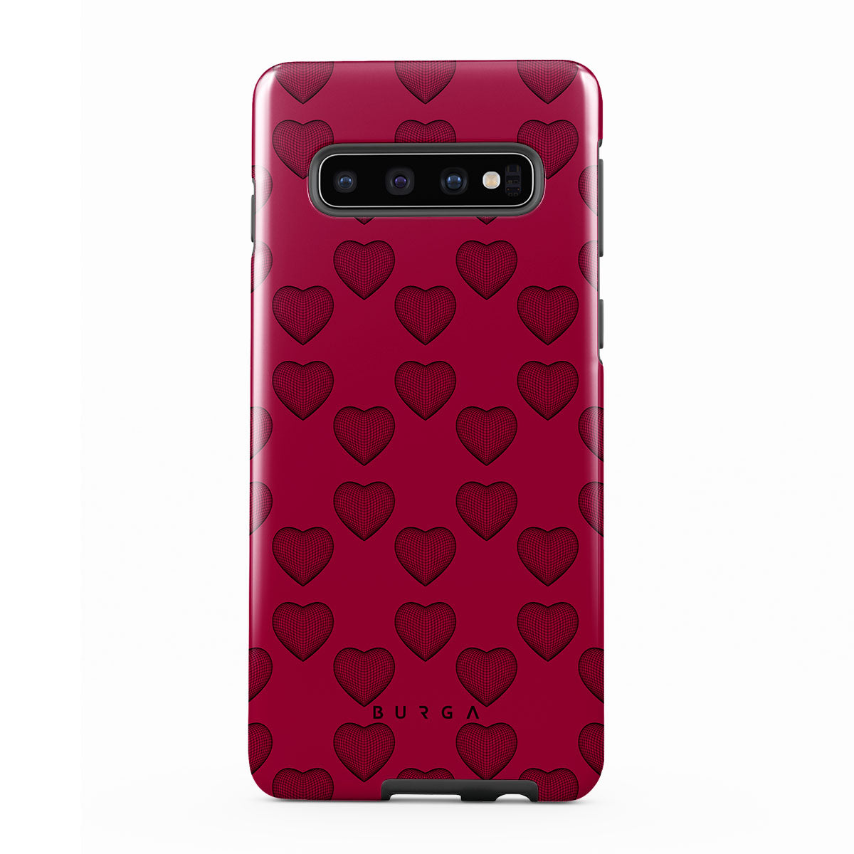 Forget roses. Show the world that you're confident, unapologetically yourself, and ready to take on the day. The vivid pink background is eye-catching and fun. The floating darker hearts add depth and sophistication. While serving as a gentle reminder to prioritize your own happiness, our Single Not Sorry Samsung Galaxy S10 4G phone case will brighten up any outfit.
